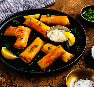 2. Place 1 tbsp of mixture and one stick of cheese on a wrapper. Tuck in the sides and roll tightly. Seal edges with water. Repeat procedure for the rest of the mixture.